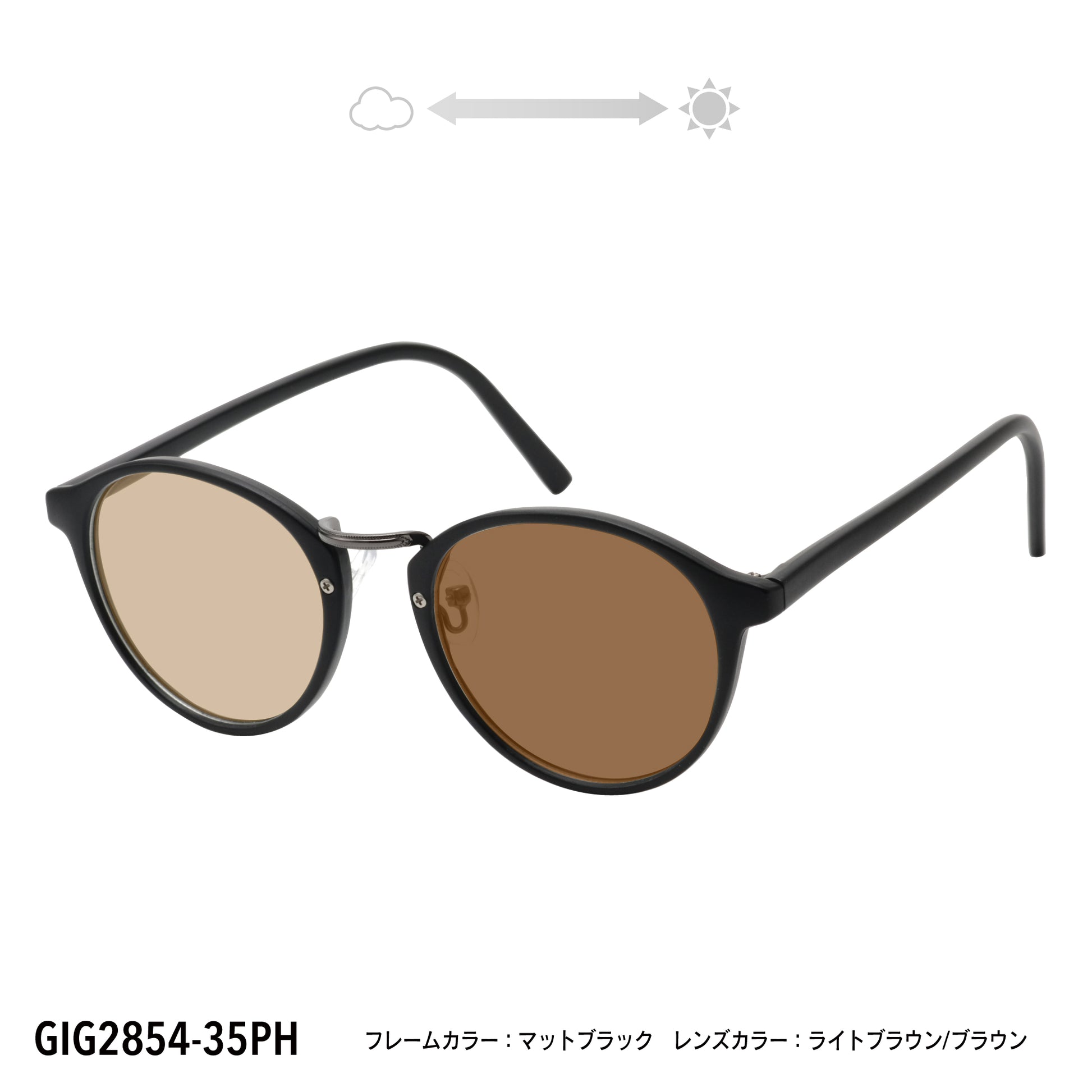 紫外線の量によってレンズの濃さが変わる調光機能と、路面などの反射を抑え見えやすくする偏光機能を兼ね備えたサングラス。マットな質感のフレームに、金属パーツがアクセントとなるボストンタイプのフレーム。紫外線99%カット。